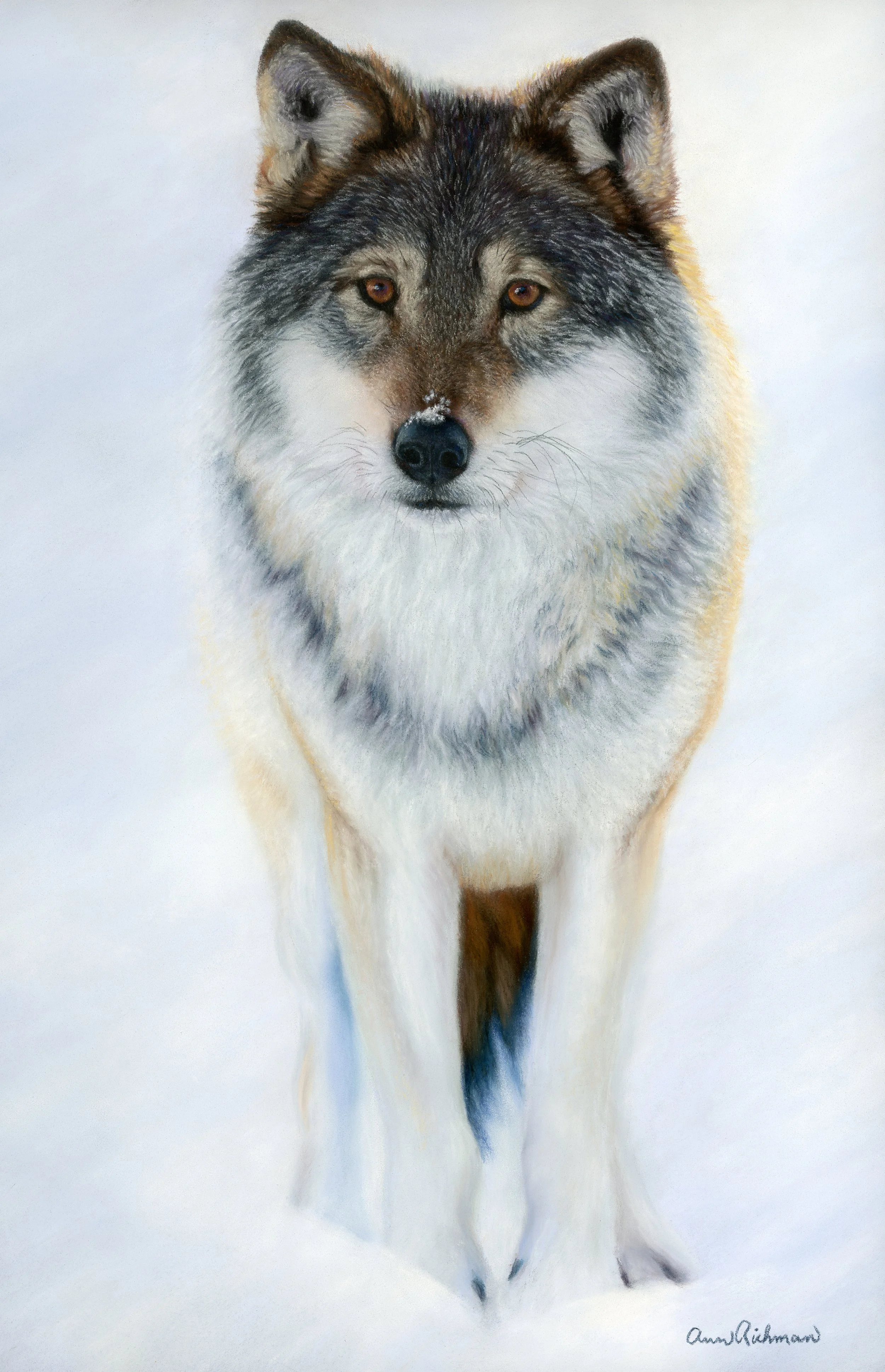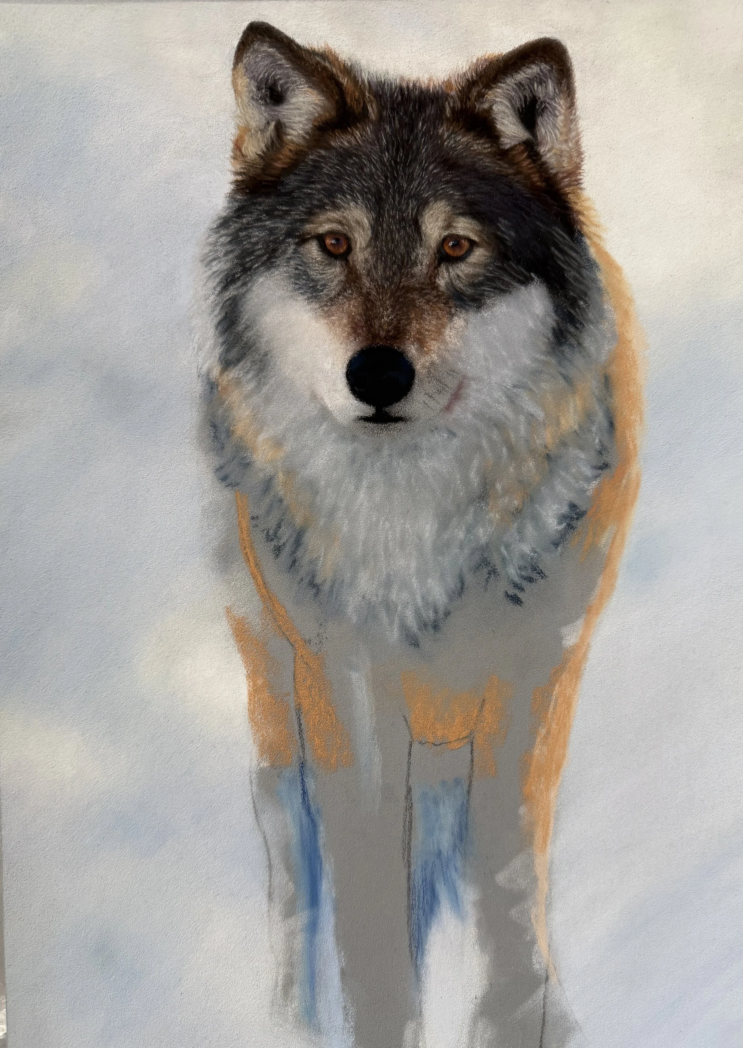 Where the Wolf Becomes Winter, completed in mostly soft pastels on Pastelmat.