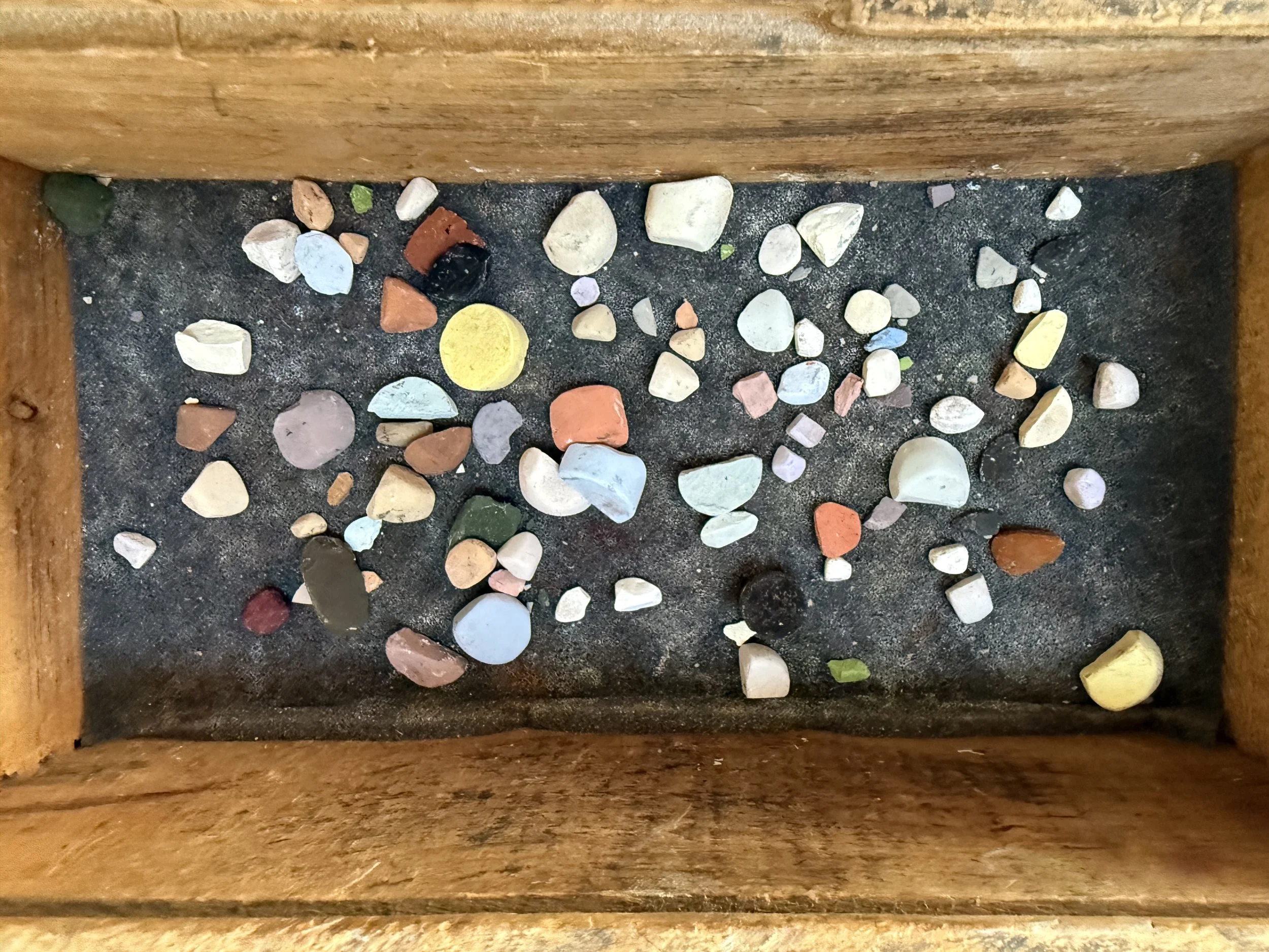 Here is a cigar box that I use to store my pastel fragments. Soft pastels are expensive! I try to use every little piece if I can. Plus, these little shapes help me to achieve detailed marks towards the end of my piece.