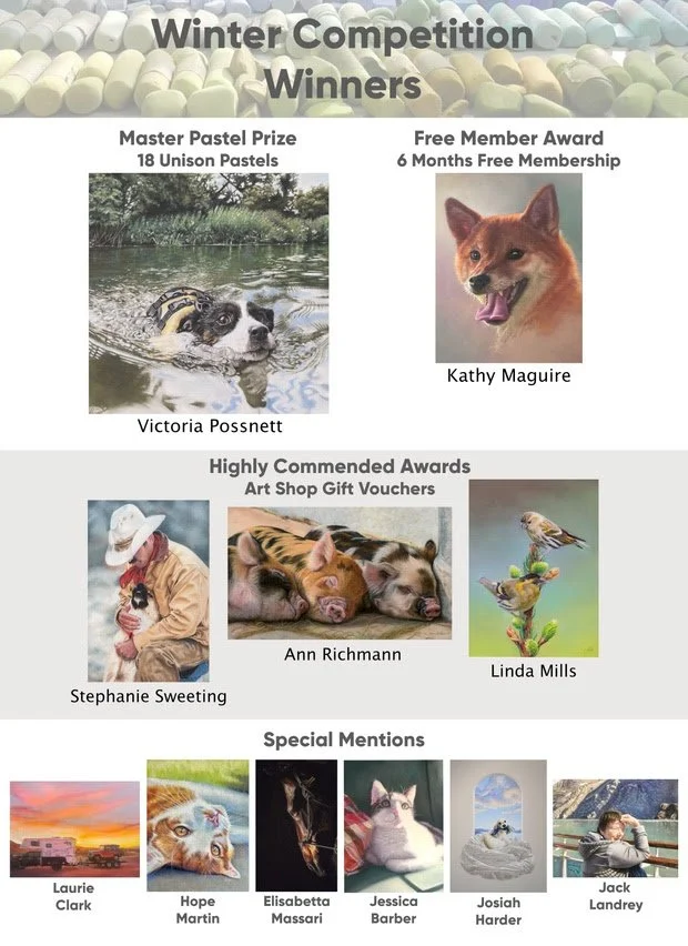I was selected by Emma Colbert for a Highly Commended Award in her Winter Completions 2024 exhibition, which featured the work of other talented pastelists. I have long admired Emma and have learned so much from her techniques and approach to pastel work, making this recognition especially meaningful.