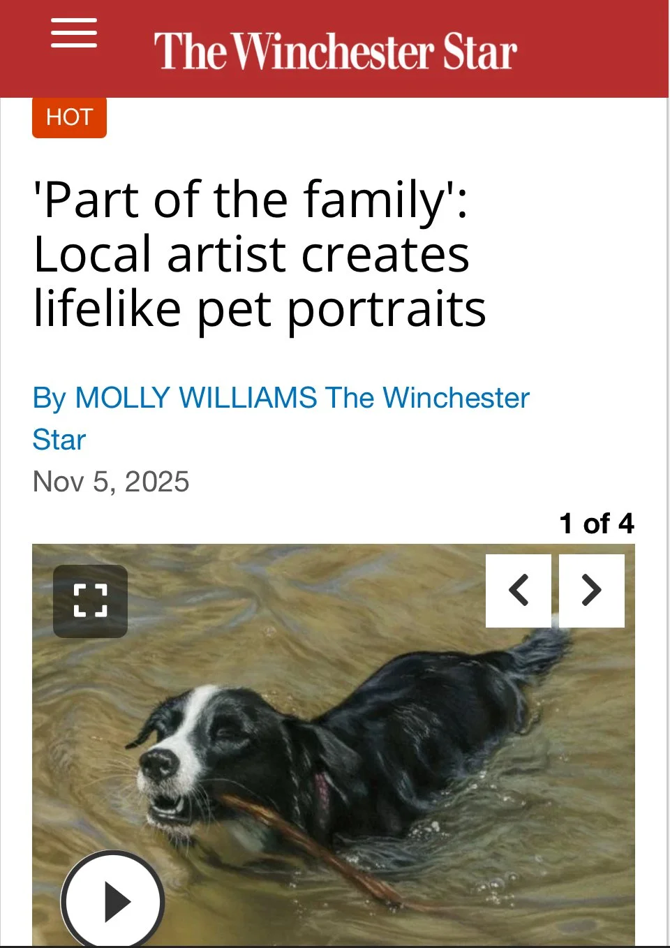 I was showcased in the November 5 Holiday Gift Guide for pet portraits in two newspapers, highlighting my work as a unique gift idea for animal lovers. Click here to read the article.